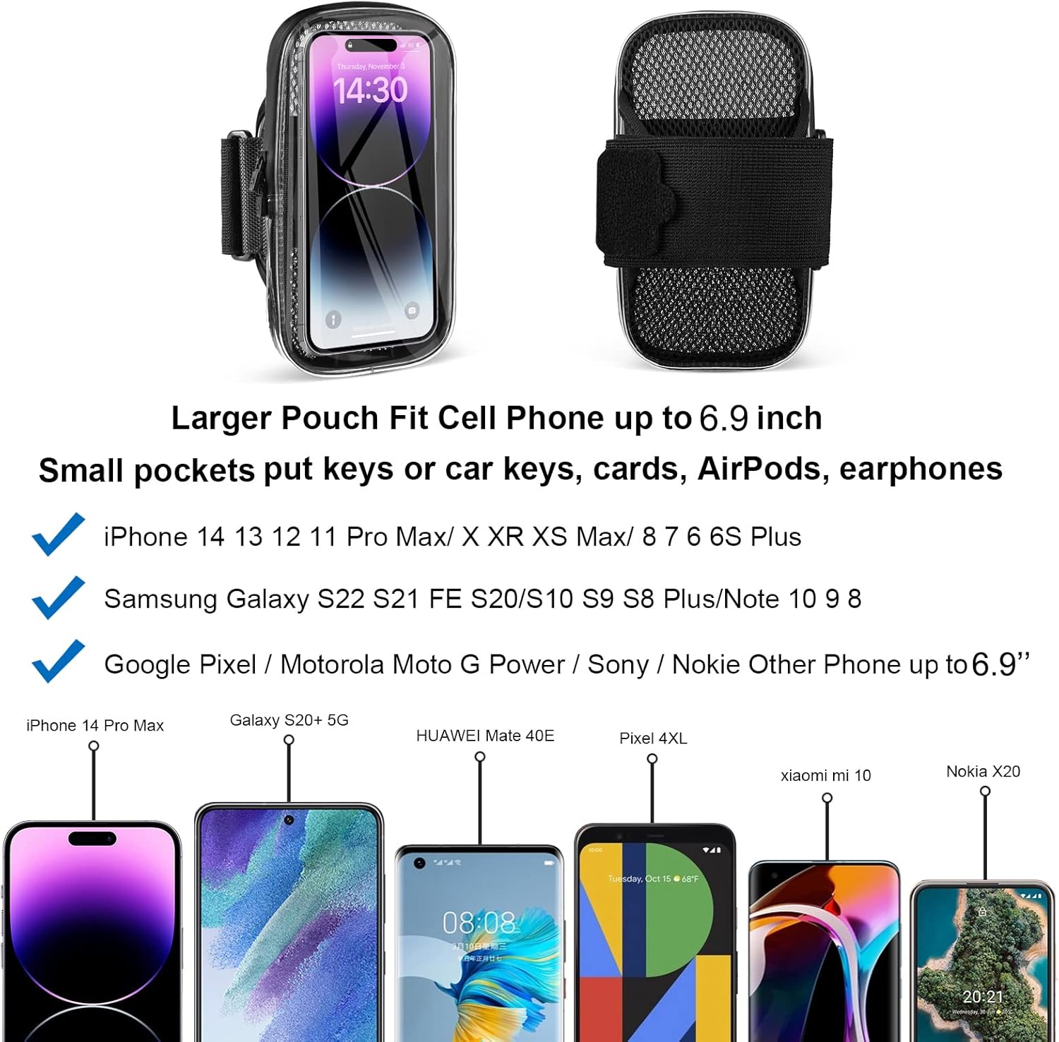Clear Running Phone Holder Armband, Sports Armband Case for iPhone 14 13 Pro Max 12 11 Plus X XS Samsung Android, Universal Arm Bands Bag with Key Card Pocket for Exercise Walking Workout Fitness